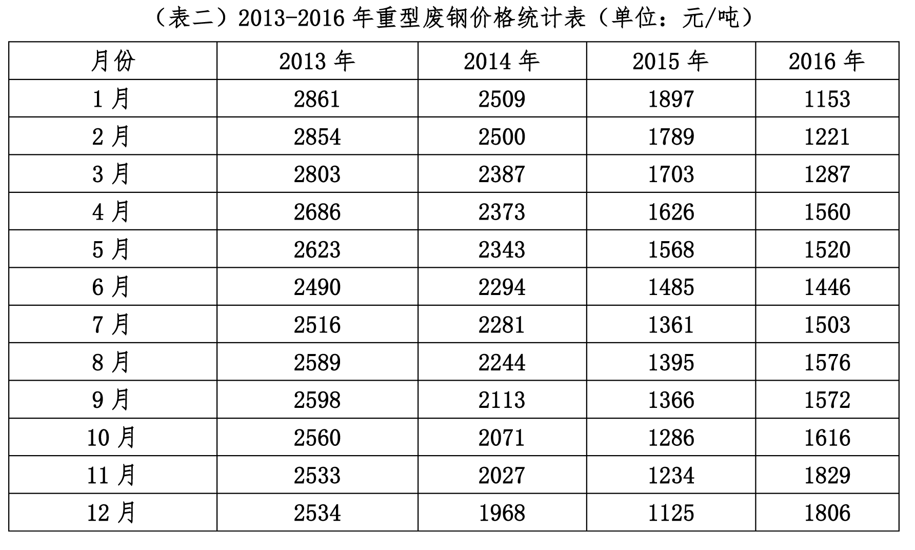 废钢铁市场价格从年初一路上涨,平均价格比2015年同期平均上涨400-500元,最高价格比最低价格上涨一倍之多。特别是下半年由于煤炭价格翻倍上涨,造成了铁水成本不断攀升,钢铁企业不断增加废钢铁的使用量,许多钢企都在抢购重型废钢,把多用废钢铁做为节铁增钢节能减排的有力措施。以重型废钢为例,2016年1月份1153元/吨。四季度平均价格1750元/吨,与2015年同比上涨了560元/吨,涨幅32%。