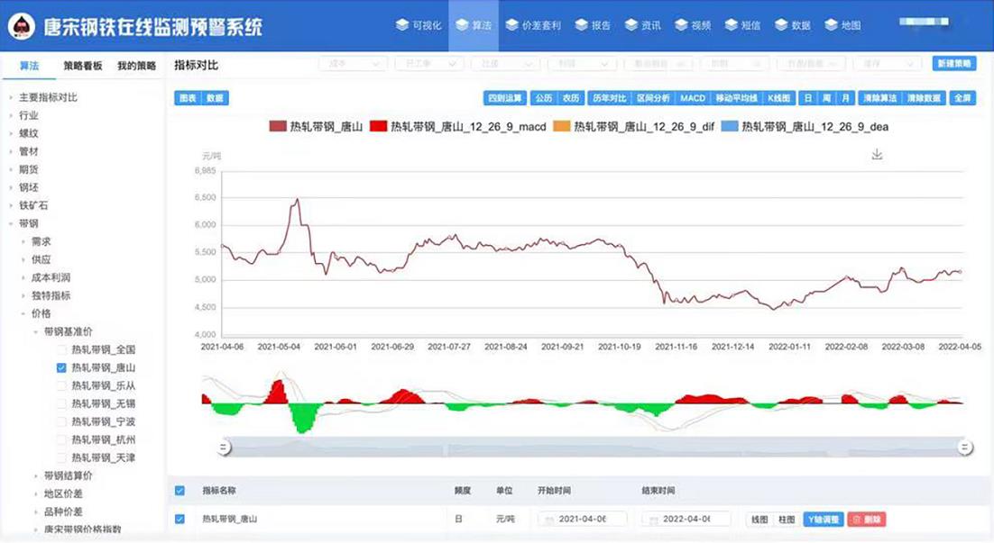 该系统主要包括数据集成、可视化算法集成、预测分析报告、市场商情等内容,全面融入唐宋十余年算法研究成果,指导企业市场预判、购销决策以及期现货交易等